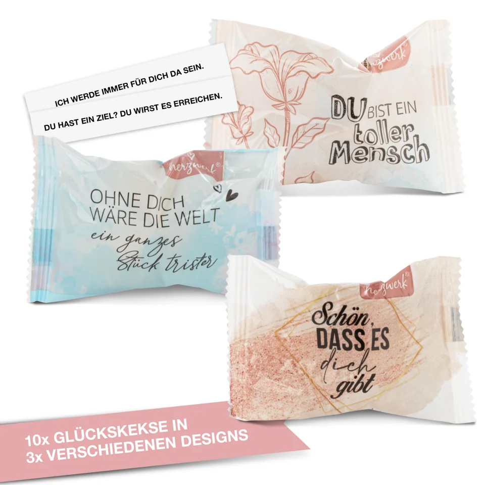 Ob als Mitbringsel, kleines Dankeschön, Geburtstagsgeschenk, Füllung für Adventskalender oder süße Überraschung zwischendurch – die Komplimente-Glückskekse sind ideal, um Wertschätzung und Freude zu zeigen. Erhältlich als handliche 10er Geschenkbox oder praktische 30er Vorratsbox – für jede Gelegenheit die richtige Menge.