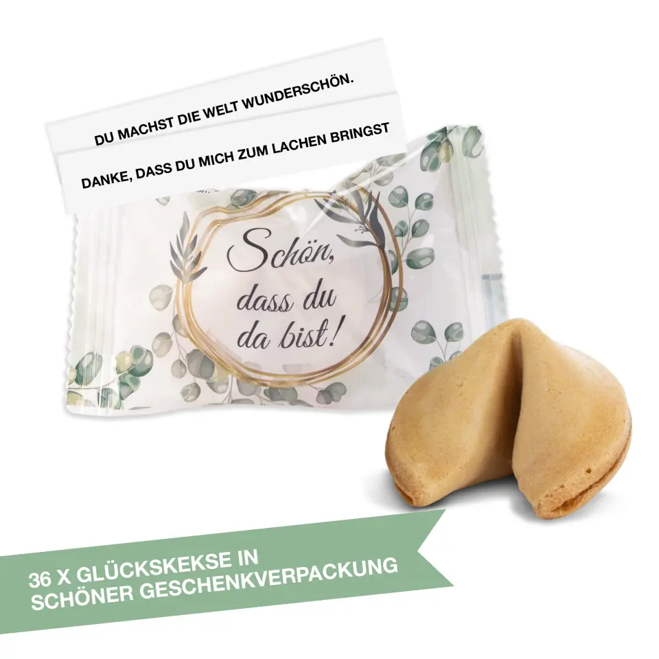 Jeder Keks enthält einen liebevoll formulierten Spruch in deutscher Sprache. Damit sorgst du sofort für ein Lächeln, positive Stimmung und ein stilvolles Highlight bei jeder Feier.