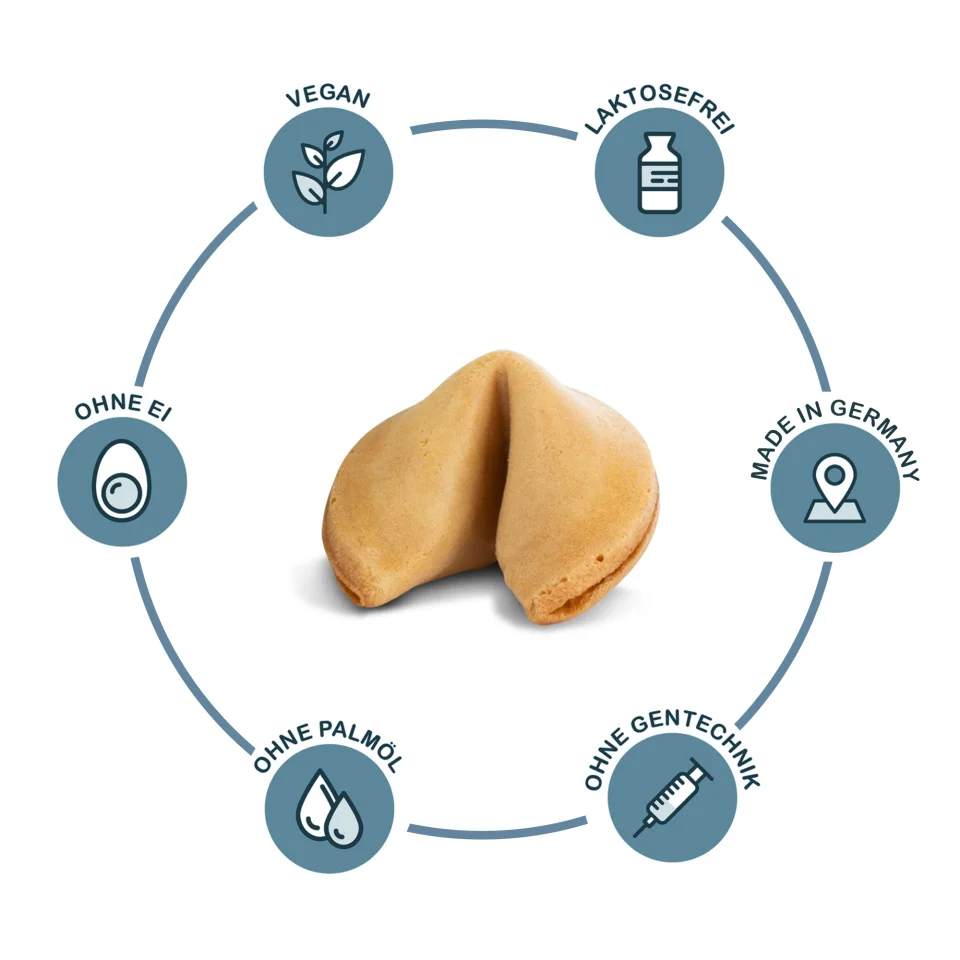 - Vor dem Verzehr den Zettel aus dem Keks herausnehmen.
