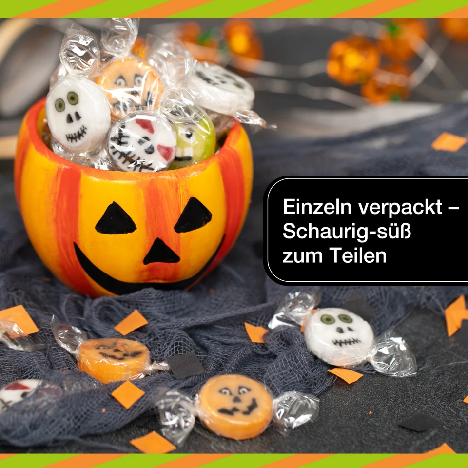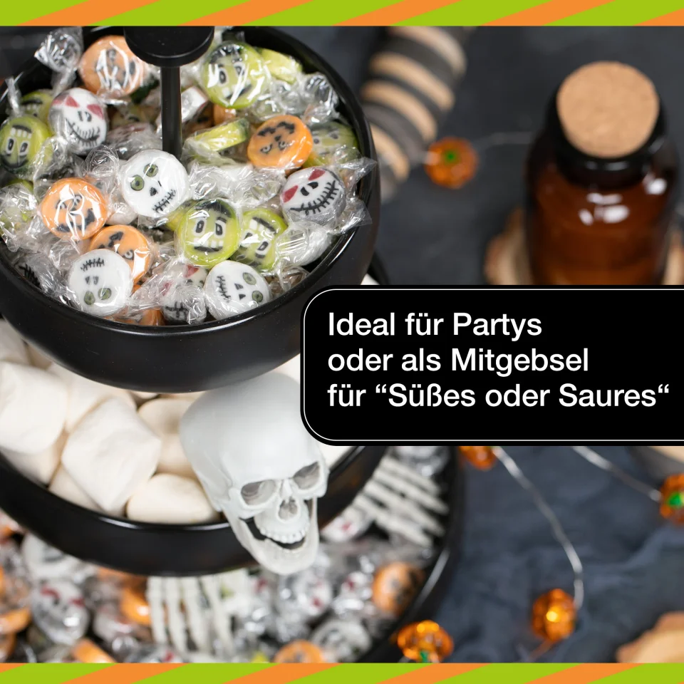 Die Halloween-Bonbons von FOOD crew sind der perfekte Begleiter für jede Gruselnacht. Mit den vier detailreich gestalteten Motiven – Kürbis, Totenkopf, Grinsegeist und Frankenstein – bringen sie nicht nur Süße, sondern auch echte Halloween-Stimmung auf den Tisch.