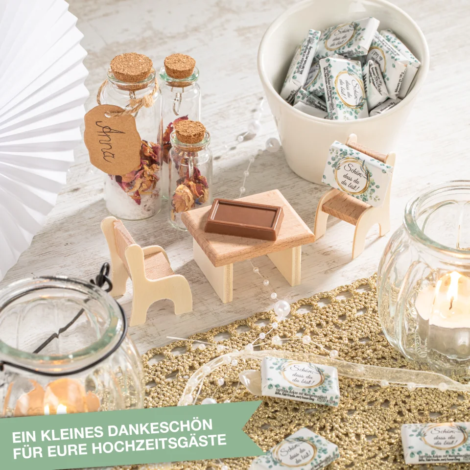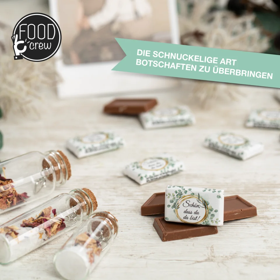 Die Minis eignen sich perfekt als Gastgeschenke bei Hochzeiten, als Mitgebsel bei Geburtstagen, als Dankeschön zu Jubiläen oder als originelles Give-away auf Firmenfeiern. Auch bei Taufen, Kommunionen oder zu Weihnachten sind die Schokoladen eine charmante und persönliche Aufmerksamkeit, die in Erinnerung bleibt.
