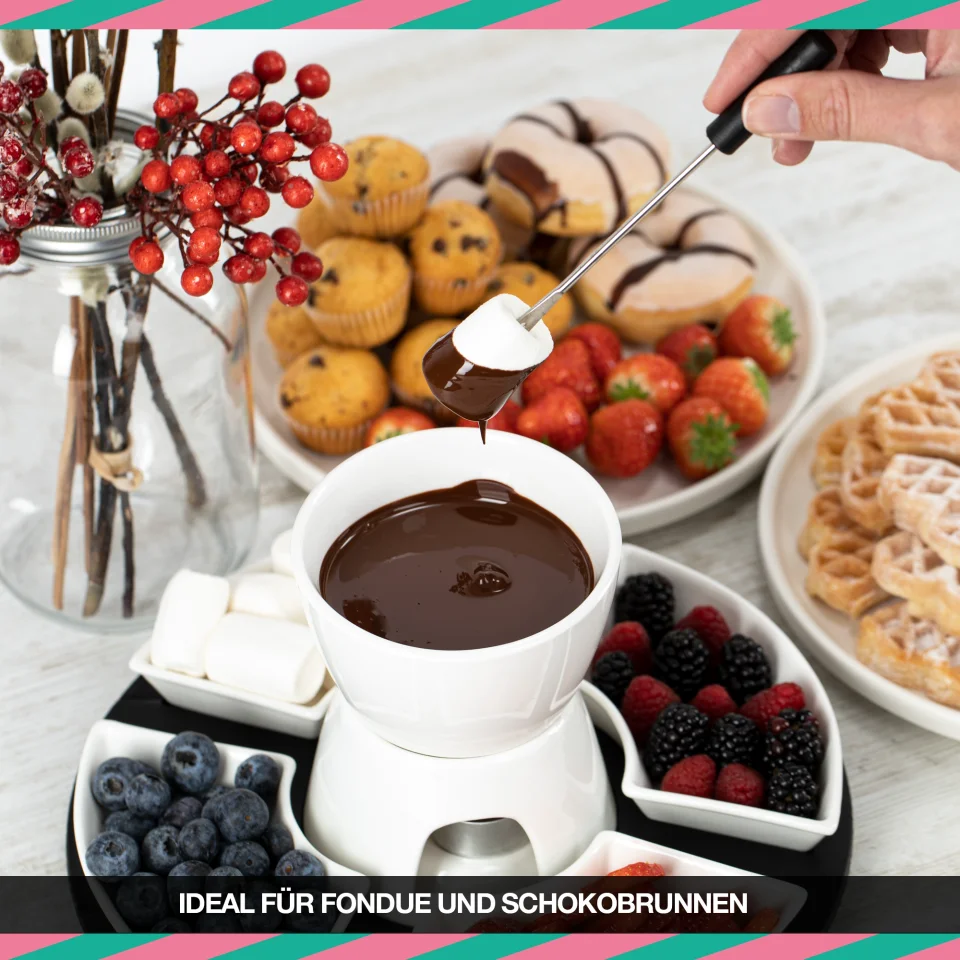 Dank der praktischen 10 Portionsbeutel à 90 g (insgesamt 900 g) lässt sich die Schokolade einfach dosieren, hygienisch verwenden und bequem aufbewahren. Einfach im Wasserbad oder in der Mikrowelle schmelzen – und schon kannst du Obst, Kekse oder Marshmallows in die zartbittere Schokolade tauchen.