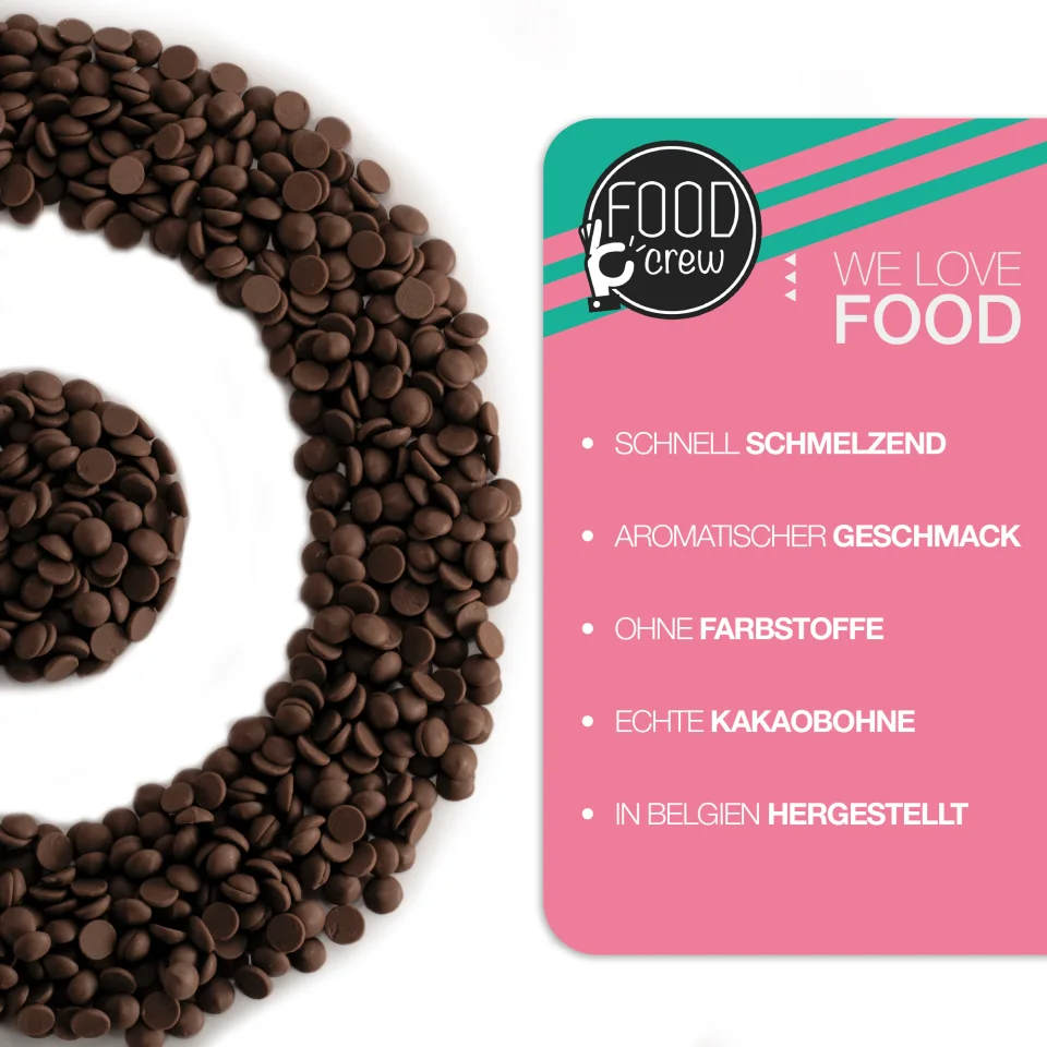 Mit den FOOD crew Schoko-Fondue Tropfen aus belgischer Zartbitterschokolade wird jede Feier zu einem besonderen Highlight. Die feinen Schokodrops sind perfekt für Schokoladen-Fondue, Schokobrunnen oder zum Backen und Verzieren von Kuchen, Muffins und Desserts.